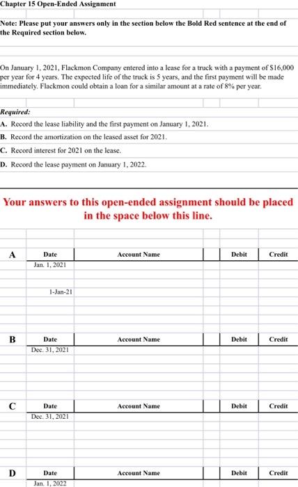 Solved Chapter 15 Open Ended Assignment Note Please Put Chegg Com